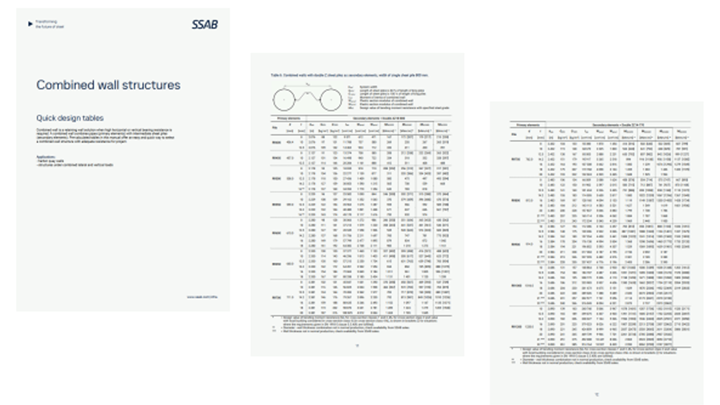 Quick design tables for Combined wall structures